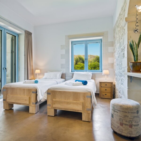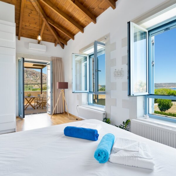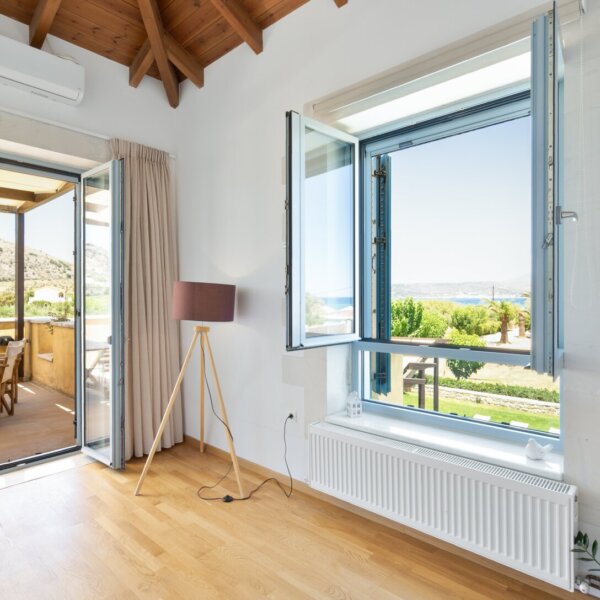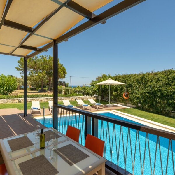 Beautiful, spacious property, well laid out with a lovely pool. Stunning views from the house – can lay in bed and see and hear the sea. Amazing location near to a quiet part of the beach but between two places to get food and drinks. Some tavernas within 10 min walk, a little longer to get to Kalyves.